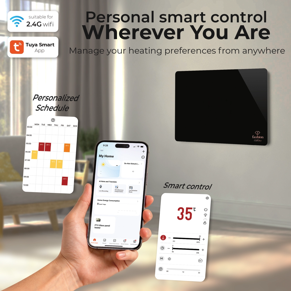 FTV-0163 | Electric glass panel heater, black- rose gold