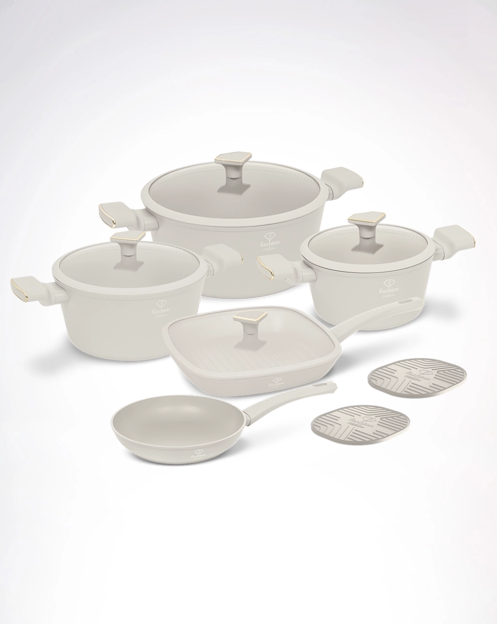 FTV-0080 | 11 pcs cookware set, Matte Cream- gold Collection