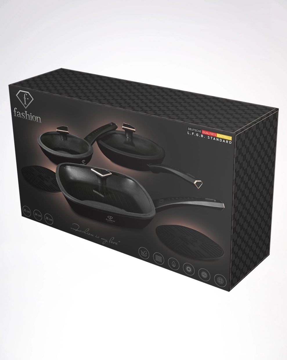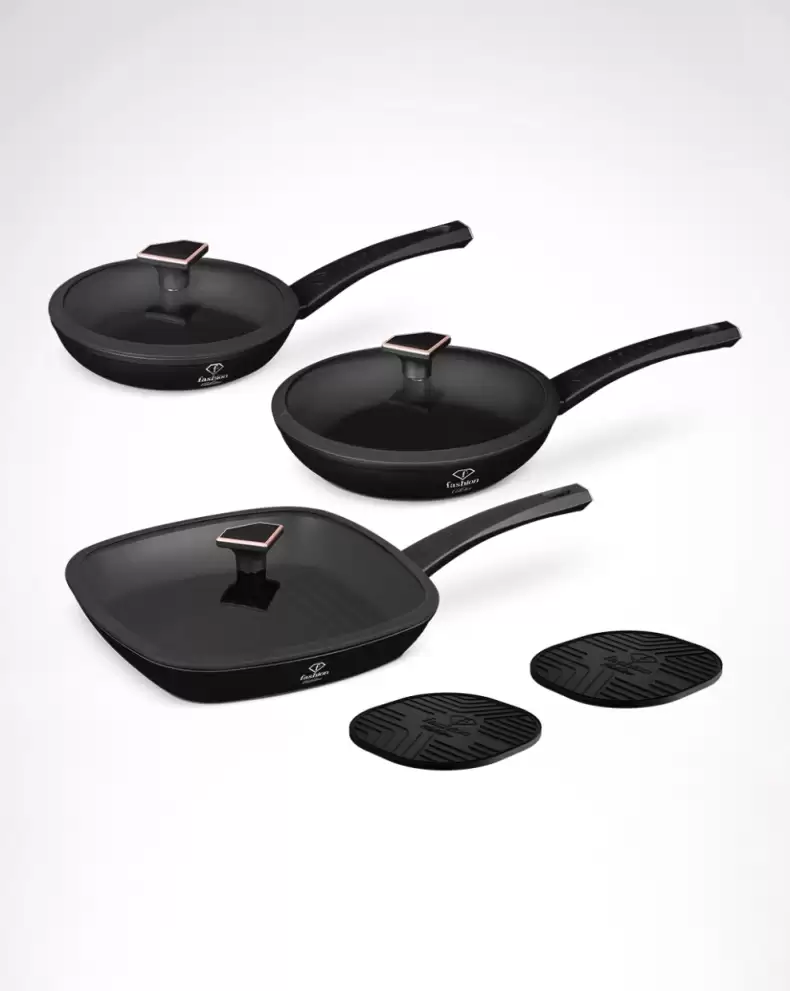 FTV-0050 | 8 pcs frypan set, Matte Black- Rose gold Collection