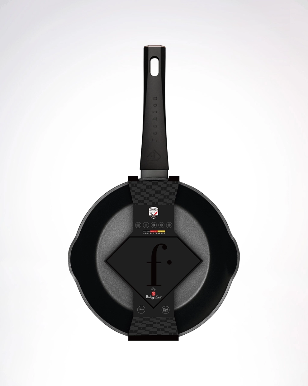 FTV-0028 | Deep frypan with 2 mouth, 24 cm, Matte Black- Rose gold Collection