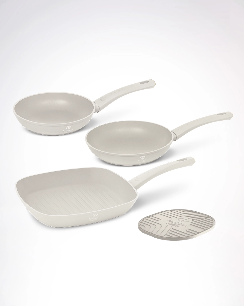 FTV-0076 | 4 pcs frypan set, Matte Cream- gold Collection