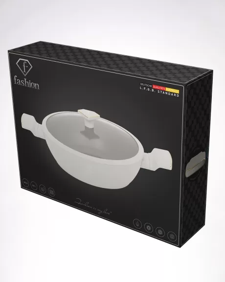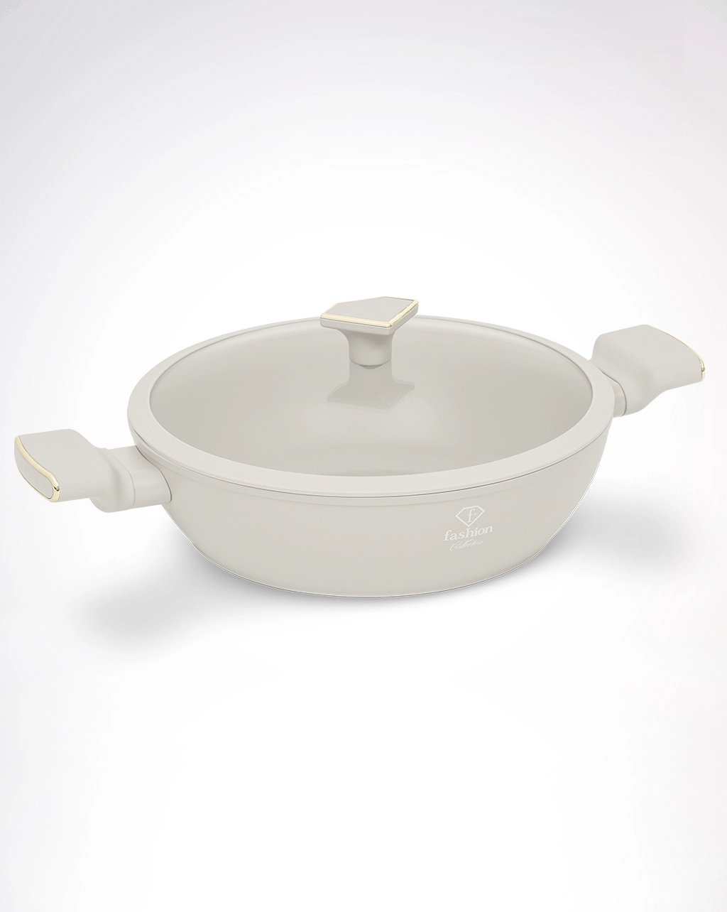 FTV-0066 | Shallow pot with lid, 28 cm, Matte Cream- gold Collection